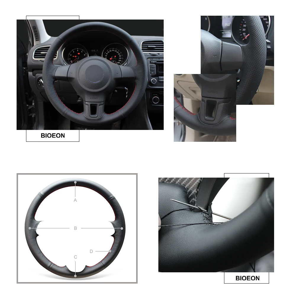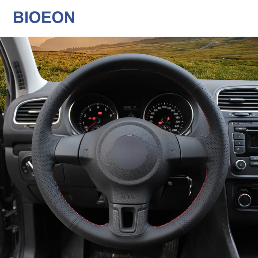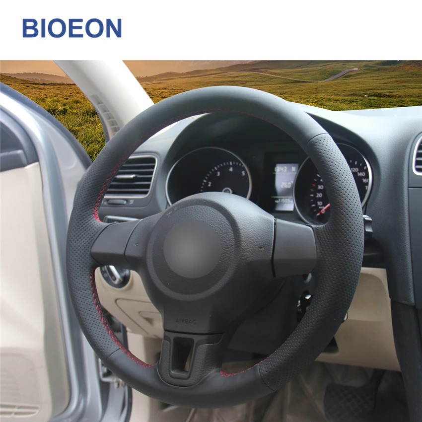 Черные чехлы рулевого колеса автомобиля из искусственной кожи для ручного шитья для Volkswagen VW Golf 6 (VI) Golf Plus Polo Tiguan Touran