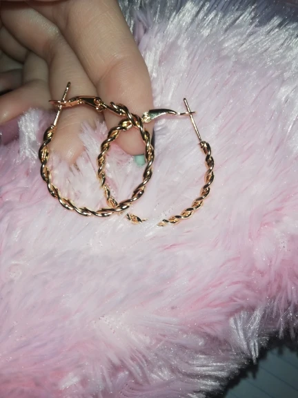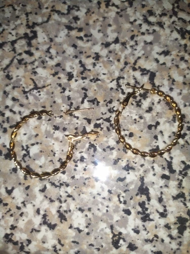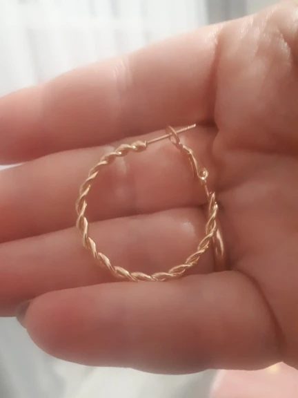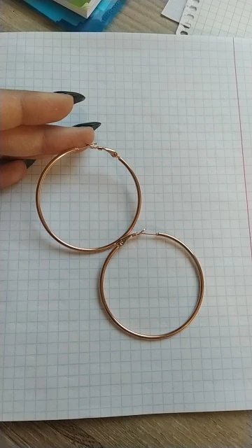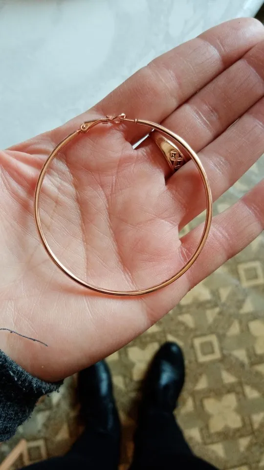Эти серьги очень блестящие, выглядят почти как розовое золото. Они имеют один дюйм поперек. Очень красиво, с нетерпением ждем их носить.
