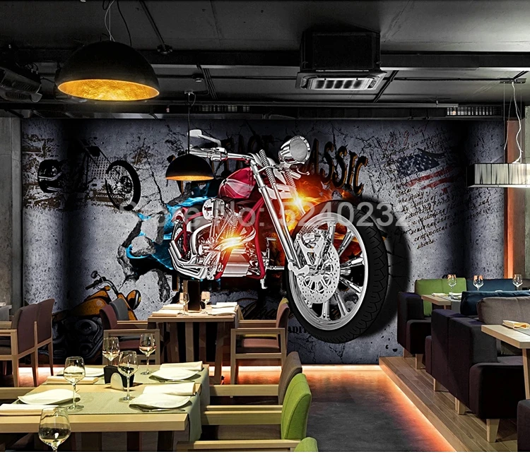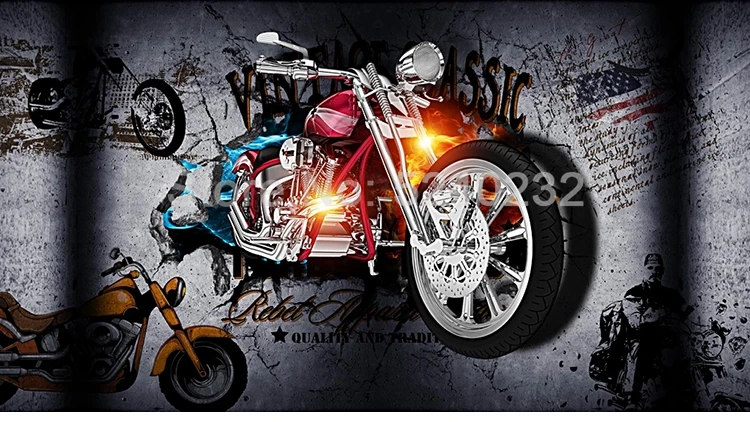 Пользовательские 3D настенные фрески обои мотоцикл сломанная стена Личность Ретро Бар KTV Ресторан фото постер Декор настенная живопись
