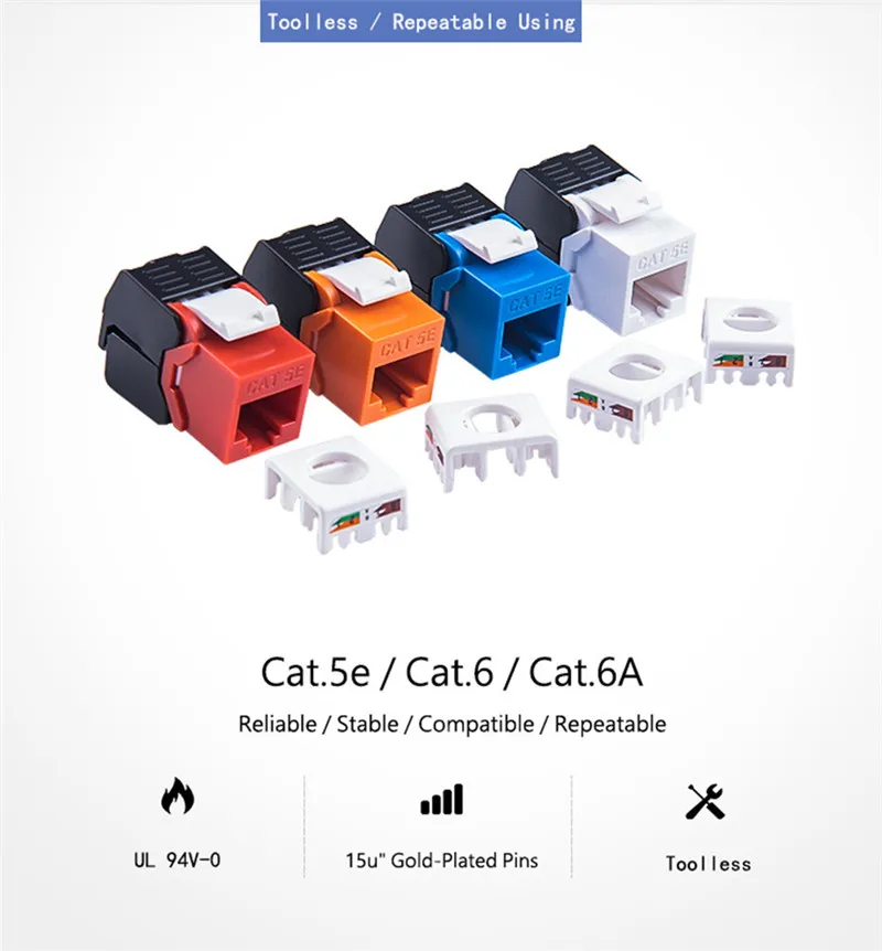 Разъем Cat6 Keystone Jack без инструментов, разъем RJ45 Cat, 6 модулей, разъем, многократный, используемый для кабеля 23-26AWG 15u, позолоченные контактные контакты