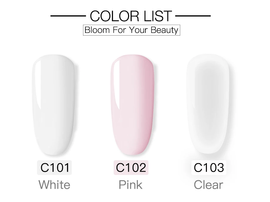 Шаг наращивания ногтей: 1. Нанесите Базовое покрытие, отвердите светодиодной/УФ-лампой. 2. Наденьте ноготь форму на ноготь. 3. Возьмите достаточное количество акриловой жидкости в чашку. 4. Нанесите акриловую пудру акриловой жидкостью на ноготь. 5. Нанесите его на ноготь. Подождите, пока он высохнет. 6. Снимите форму ногтя. 7. Обрежьте форму ногтей. 8. Нанесите верхнее покрытие, отвердите светодиодной/УФ-лампой. 9. Отделка.