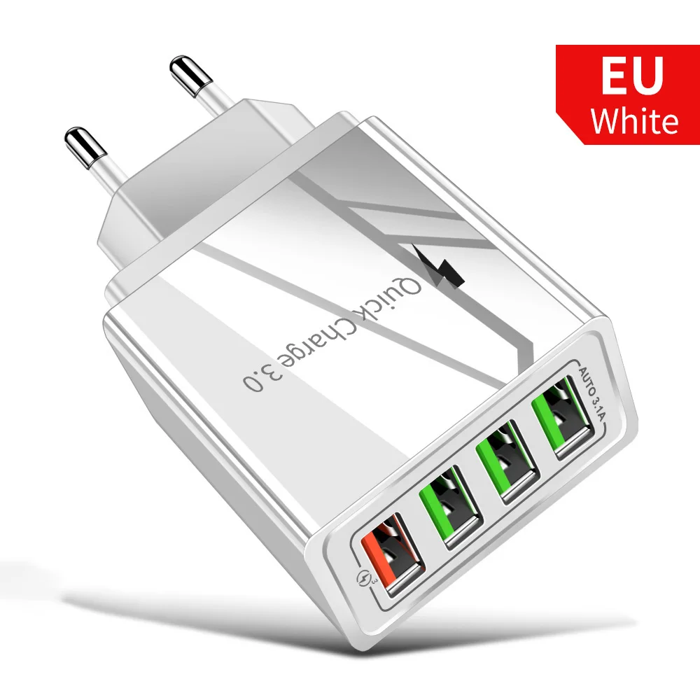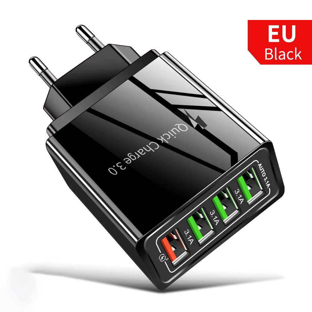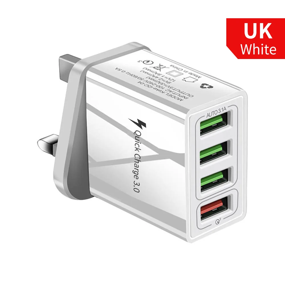 Быстрая зарядка с 4 портами, 3.0 стандартное настенное зарядное устройство с вилкой Стандарта Великобритании, ЕС, США