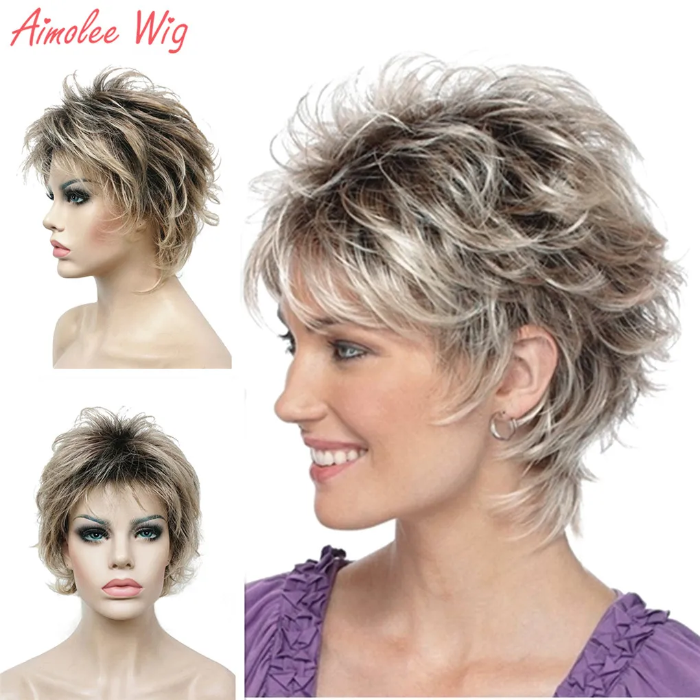 Женские синтетические парики с короткими прямыми многослойными волосами