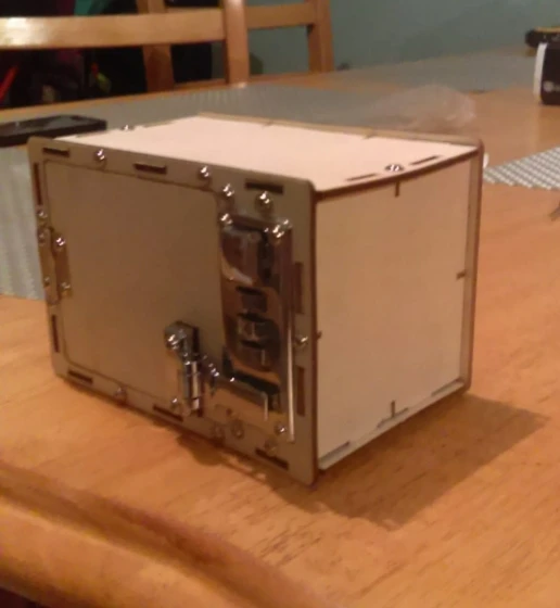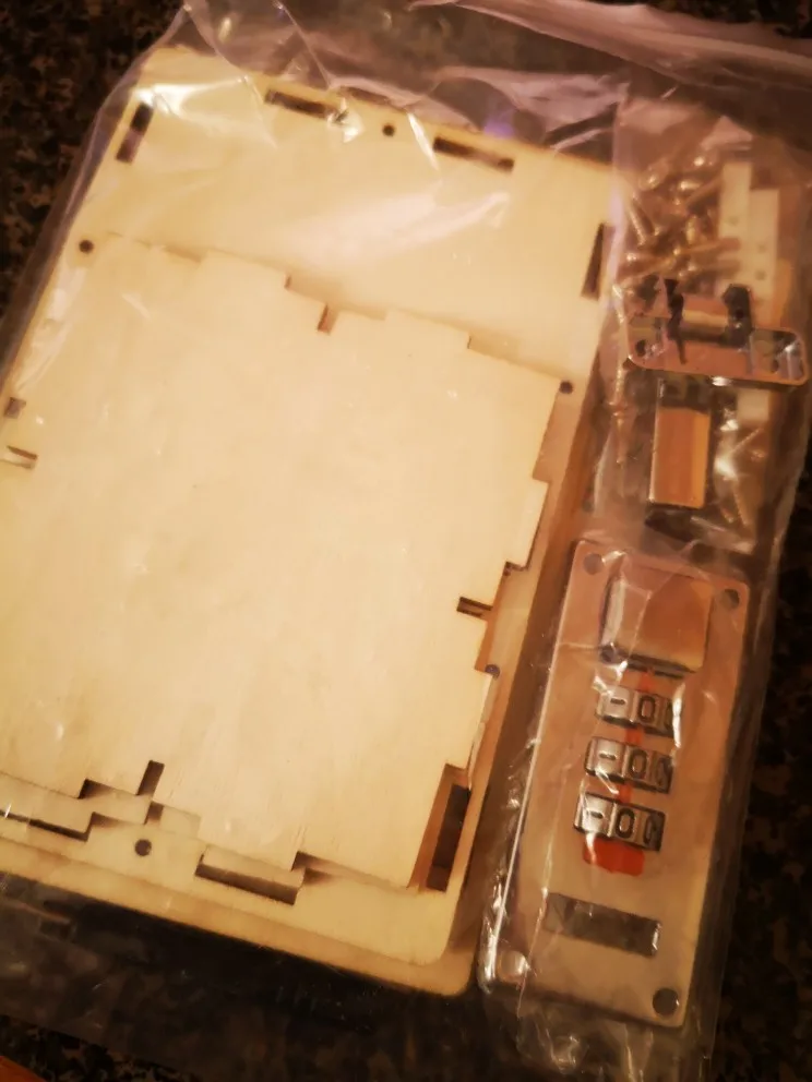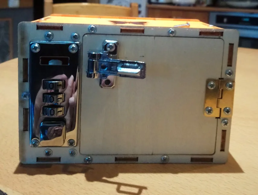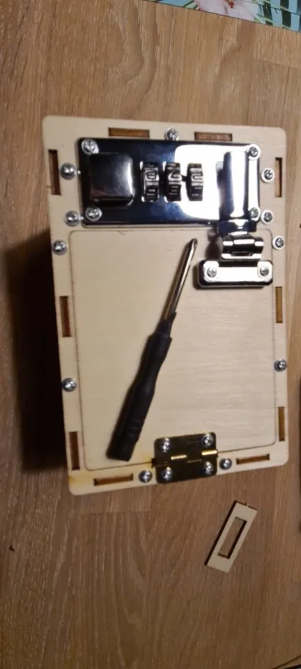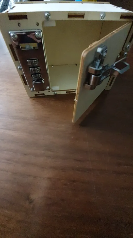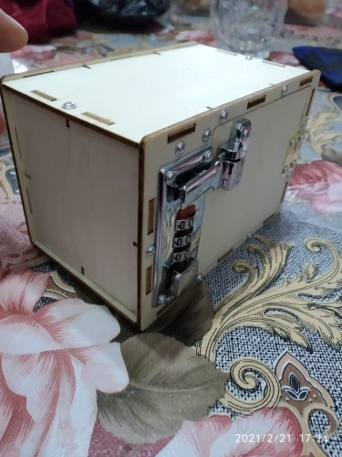 Отличная деревянная коробочка. Ребёнок использует как копилку от брата. Собирается легко за 20 минут. Удобный замок с легкой перекодировкой. По размеру маленькая но удобная,отвертка и весь крепёж в комплекте.
