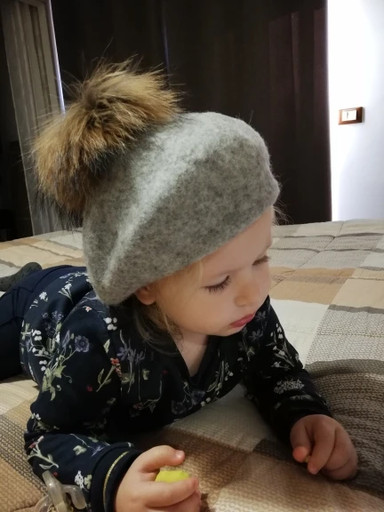 un poco justa, la boina no es muy agradable al tacto, el pompon si