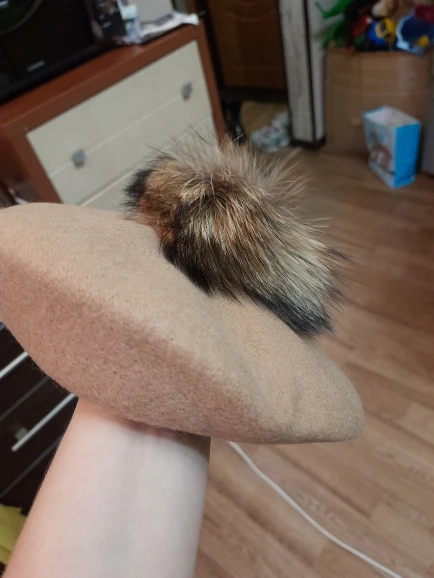 Берет соответствует описанию, плотный кашемировый берет, помпона на булавке