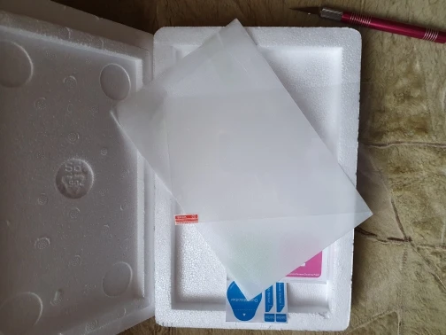 Стекло на планшет, липкий слой с одной стороны, с лицевой стороны плёнки защитной нет. Упаковали на совесть. Ещё не клеила, визуально всё по размеру экрана. На момент покупки цена 143 руб, плюс доставка 200 руб. Доставка 19 дней, трек номер отслеживался.