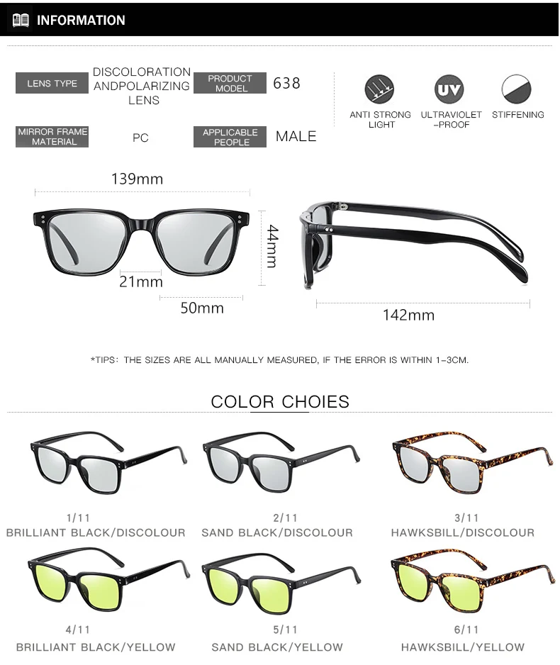 Мужские Солнцезащитные очки-Хамелеон, квадратные фотохромные Поляри...