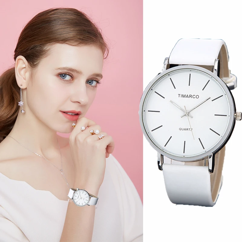 Часы наручные женские кварцевые с круглым белым циферблатом, модные брендовые с кожаным ремешком, 2021