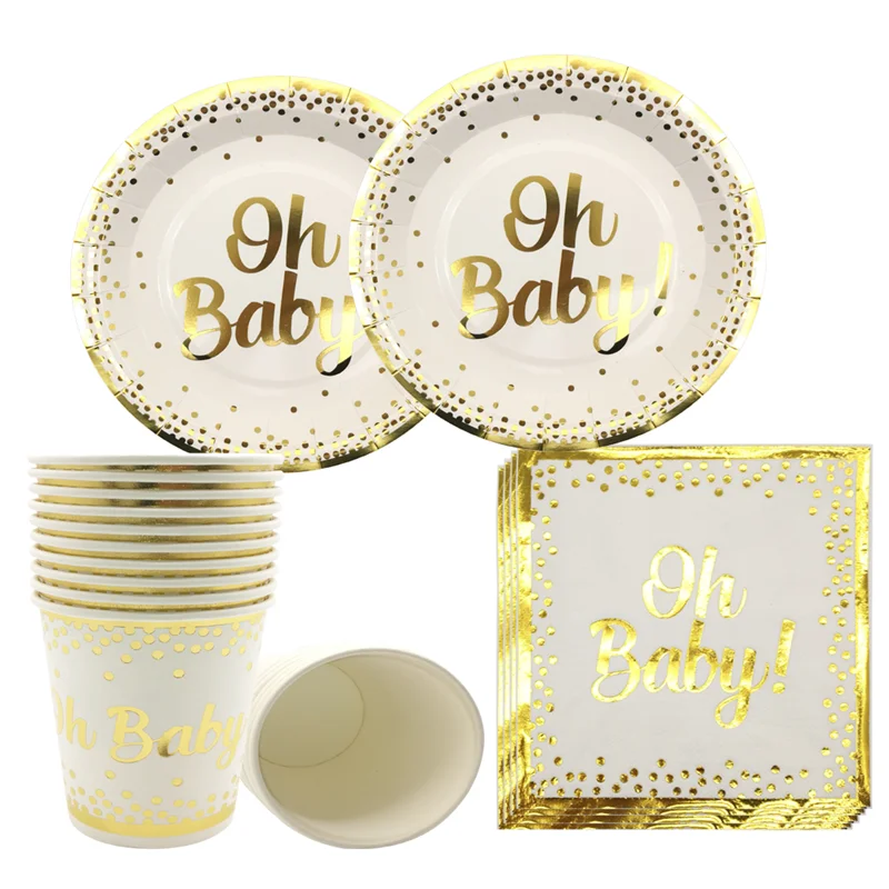 Chicinlife золото oh детская одноразовая посуда бумажные стаканчики салфетки крестины крещение детский душ вечерние украшения день рождения