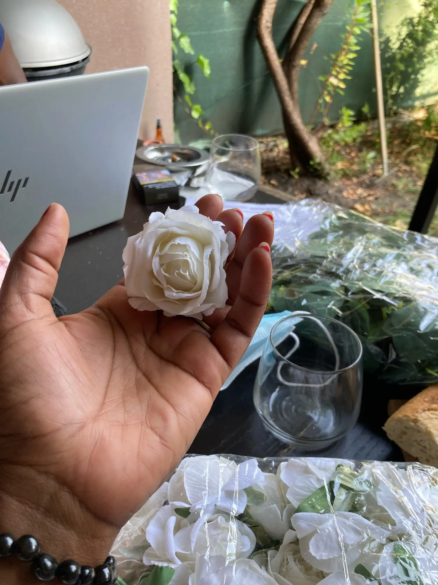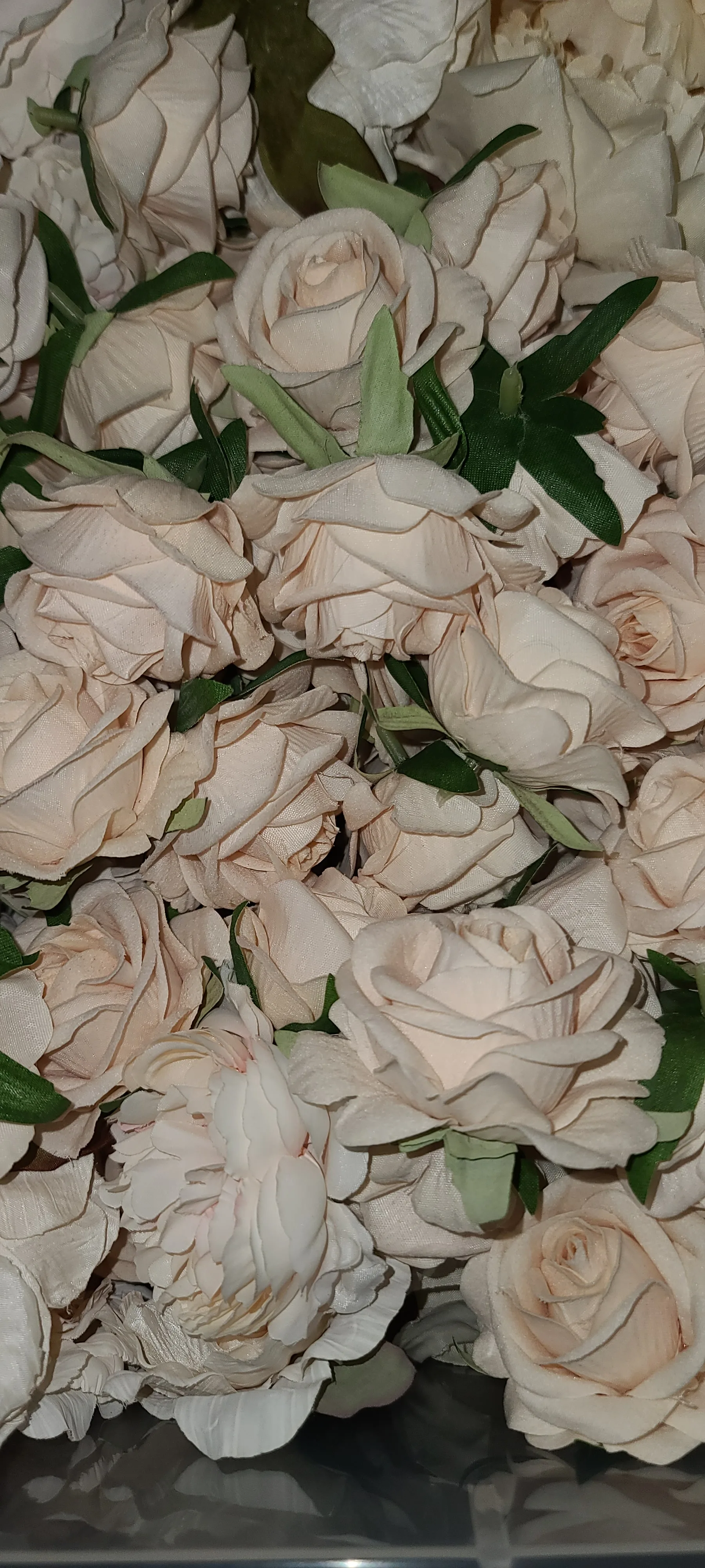 Я получил белые розы, но ожидал, что они будут шелковыми. Они чувствуют себя твердыми, как комбинация пены и некоторых других материалов, но не шелка. Я не слишком впечатлен этим, но мне не хочется проходить через другой Тур покупок и искать розы. Я просто надеюсь, что никто не тронет их и что другие цветы, которые я заказал,-это действительно шелк, помогут снять фокус с белых, которых нет. Кроме того, они не выглядят плохо .. Я могу сделать их рабочими