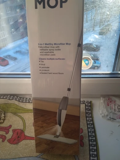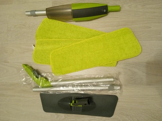 Классная швабра! Привез домой курьер через 9 дней после заказа. Легко и просто собрала. Заказывала с тремя тряпками. Получилась за 960руб. Хорошей длины ручка. Брызгает прямо далековато и хороший радиус разбрыгивания. Тряпка из микрофибры легко прилипает и хорошо стирается. Вобщем, я довольна! Товар и продавца рекомендую!