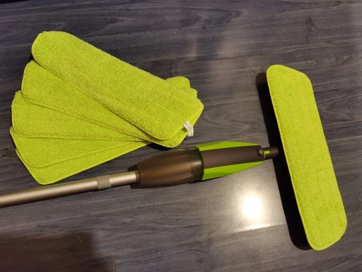 Очень крутая швабра, удобная, маневренная, полы мыть - одно удовольствие. В комплекте три тряпки, салатовый цвет - очень приятный для глаз. В общем, жена довольна, а мой мозг сейчас в релаксе, до следующей прихоти...