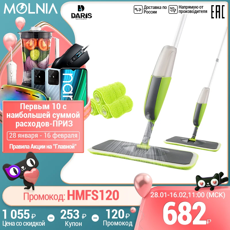Страна: RU Color: White mop + 3 nozzles Ships From: Russian Federation Доставка: Курьер в города 10.12.2020