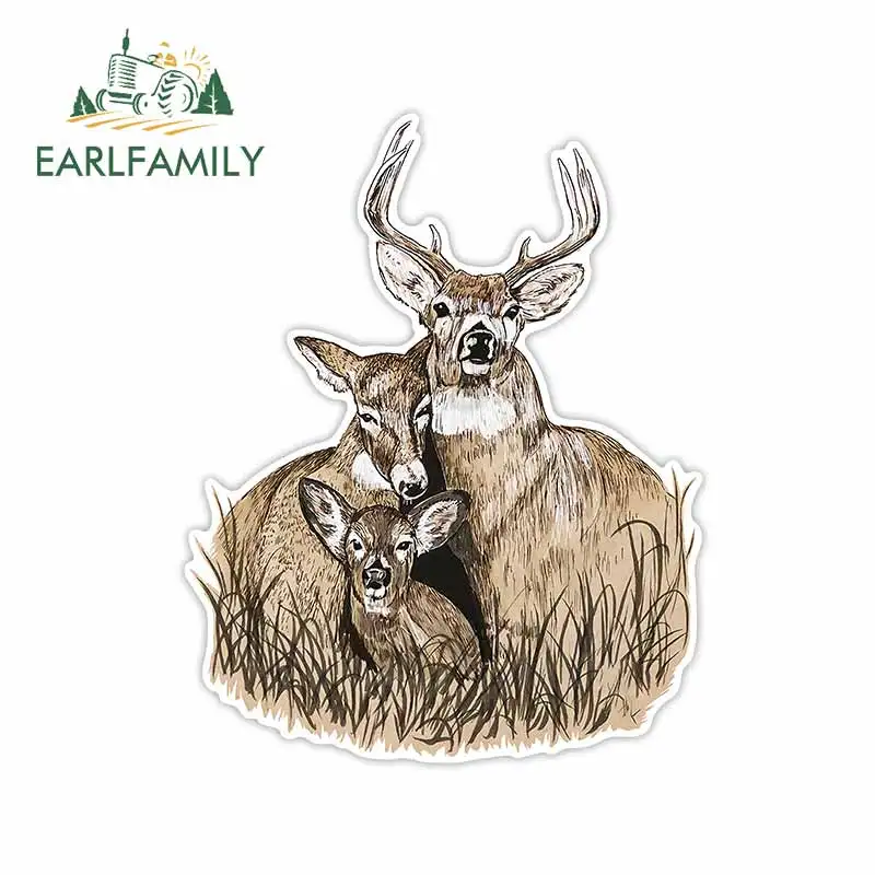 Виниловая наклейка с принтом в виде семьи оленей, 13x10,4 см