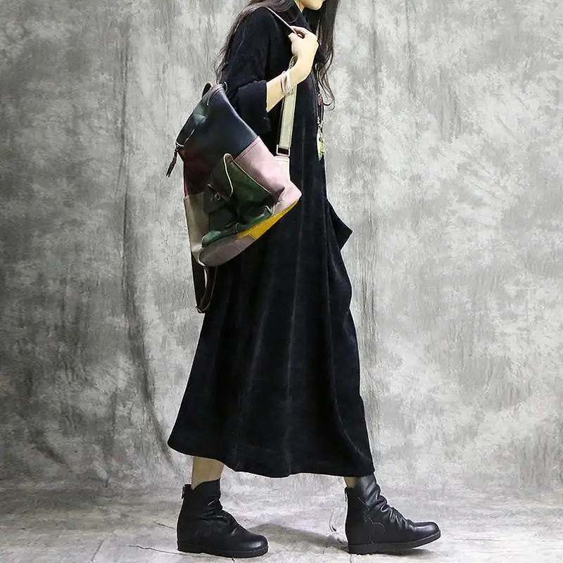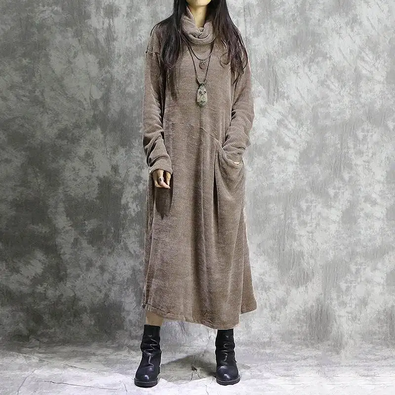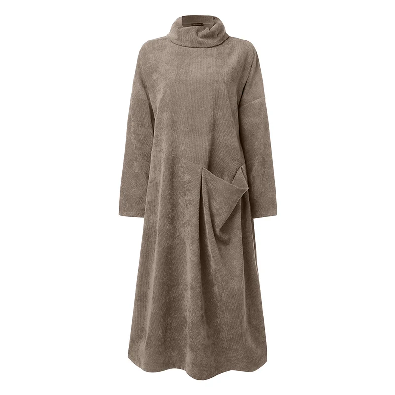 Женское вельветовое платье с длинным рукавом и воротником-хомутом