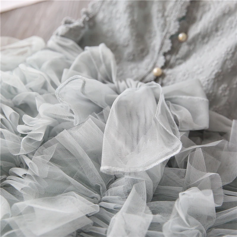 Летние платья для девочек, пышное Сетчатое кружевное платье принцес...