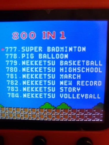 игрушка класс. все работает. 800 в 1 конечно преувеличение. по факту меньше и повторяются. но всеравно их столько, сколько в детстве я не видал даже. есть все основные хиты тех лет и непонятные кривые поделки. в общем дофига.