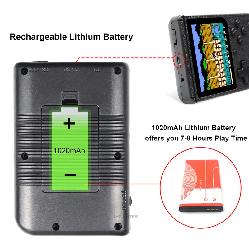 Продукт хороший, 800 игр много, я пробовал только 50-60. Я не могу найти способ сохранить игру в игре, поэтому каждый раз, когда вы начинаете игру с самого начала. В любом случае, дисплей не является чем-то особенным, но его можно увидеть/играть без проблем. Большой объем, никаких проблем до сих пор. Качество ТВ-кабеля действительно плохое, перемещая коннектор телевизор получает артефакты или теряет соединение .. Нет настроек самого устройства, просто возможно сначала выбрать между английским и китайским, а затем прокрутить список игр без возможности поиска игры по имени. К сожалению, мое устройство поставляется с проблемой заряда батареи, он был заряжен только один раз, но, кажется, был мертвым. Даже если я попробую оставить его в зарядке в течение нескольких часов, красный светодиод на экране, но никакой мощности нет. Продавец вернет мне 3,0 $(2,54 $ после оплаты paypal), чтобы купить новую батарею. Цена за хорошее устройство, я хотел бы порекомендовать его. Спасибо продавцу!