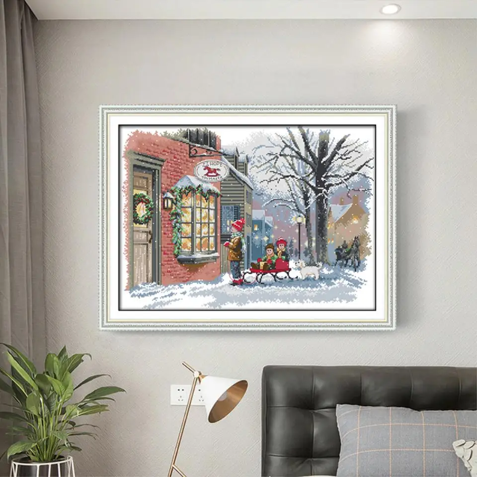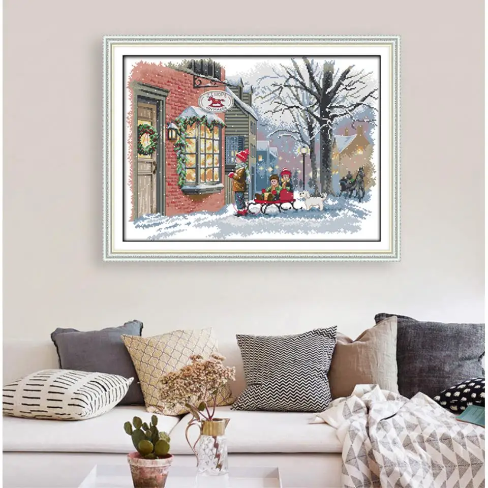 Зимний Снежный сцена, Рождественский Набор для вышивки крестом 11CT 14CT, Набор для вышивки, сделай сам, Рождественская вышивка, декоративная живопись