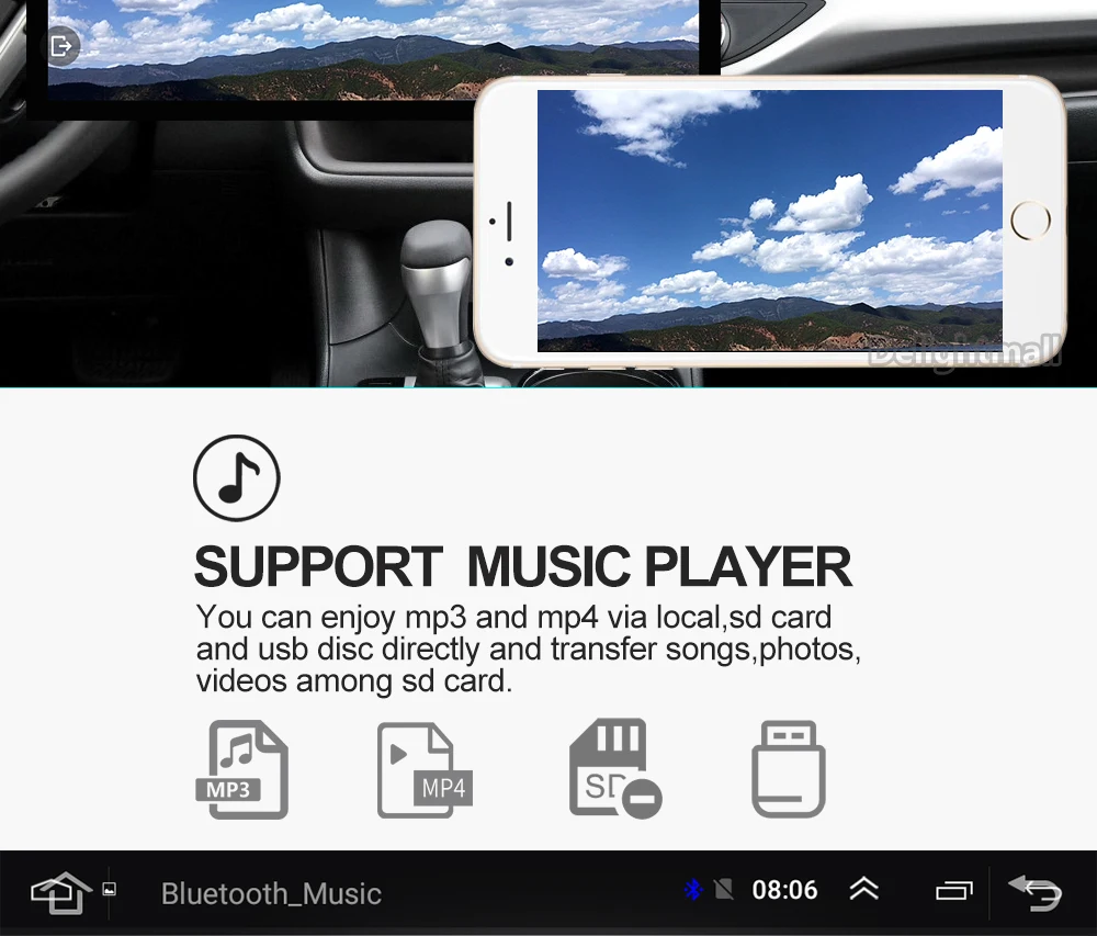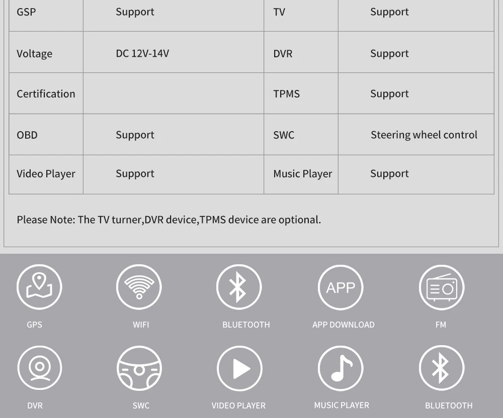 Напряжение: 12 В постоянного токаПроцессор: A7 1.3GHZx4Операционная система: Android 10,1RAM: 1G/2GПЗУ: 16 г/32 гРазмер экрана: 9 ''2.5D емкостный экранВерсия Bluetooth: ПоддержкаВнутренний: WifiGPS: поддержкаРадио диапазон: FMРазрешение: 1080PФормат аудио: MP3 MP2 AAC OGG FLAC APE WMA WAV RM AC3Формат видео: AVI 3GP/MP4 MOV MPG MKV WMV RMVBЯзык: китайский, английский, тайваньский, арабский, бразильский, русский, иврит, испанский, итальянский, французский, тайский, немецкий, японский, корейский, турецкий, чешский, иранский, венгерский, голландский, польский, шведский, украинский, вьетнамский, румынский, греческий, датский, финскийОсобенности1.Wi-Fi подключение: встроенный модуль Wi-Fi, может подключаться к Интернету через Wi-Fi горячее место, скачать приложение для просмотра онлайн-телевизора, фильма, чата с вашими фирмами2. Gps-навигация: Встроенный навигационный модуль, Поддержка многоязычного интерфейса/голосовой навигации3. Функция Bluetooth: Встроенный модуль bluetooth, поддержка подключения телефона по bluetooth, громкая связь для звонков или воспроизведение музыки по bluetooth4. Функция зеркальной связи: проигрыватель Android MP5 может зеркальной связью с телефоном Android с помощью usb-кабеля (ссылка на телефон IOS по WIFI), вы можете прикоснуться к экрану MP5, чтобы управлять телефоном на AndroidТелефон IOS не может работать с сенсорным экраном MP5 (не подходит для всех телефонов)5. Функция входного сигнала DVR: Поддержка внешнего видеорегистратора USB (DVR) вход (только для DVR с приложением), вы можете управлять видеорегистратором с помощью приложения6. Функция заднего вида: Поддержка входа камеры заднего вида, поддержка автомобиля более безопасная и удобная7. Настройка радио: Поддержка настройки FM, вы можете слушать радио, которое вас интересует, наслаждаться временем вождения8. Задний usb-порт Вход: Поддержка заднего кабеля USB вход, может воспроизводить музыку/фильм (u-диск не входит в комплект)Разрешение 9,1024*600: приносит вам высокое качество визуального опыта10. Улучшите качество звука с эквалайзером, используйте эквалайзер для регулировки звука, чтобы сделать лучшие результаты11. Поддержка изменения логотипа автомобиляПосылка включает в себя:1 х Автомобильный Android GPS мультимедийный плеер2 xusb кабели1 антенна XGPS1 кабель RCA1x Шнур Питания