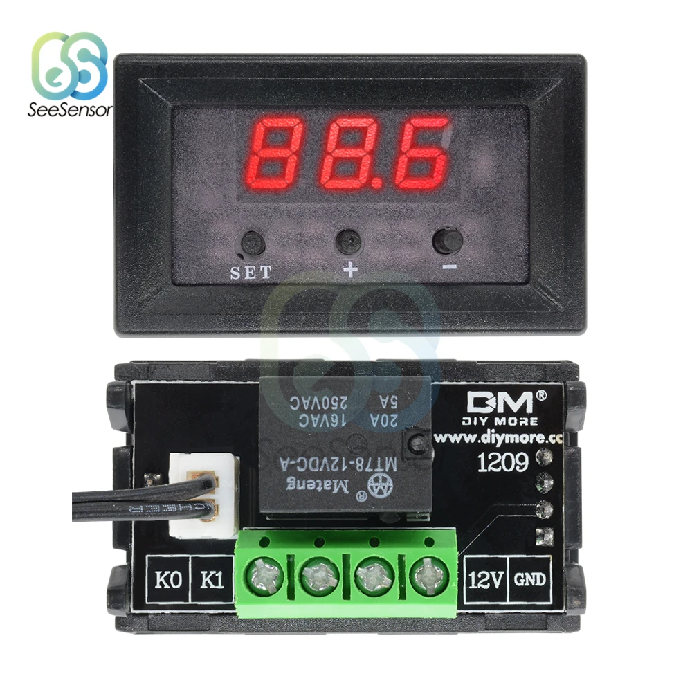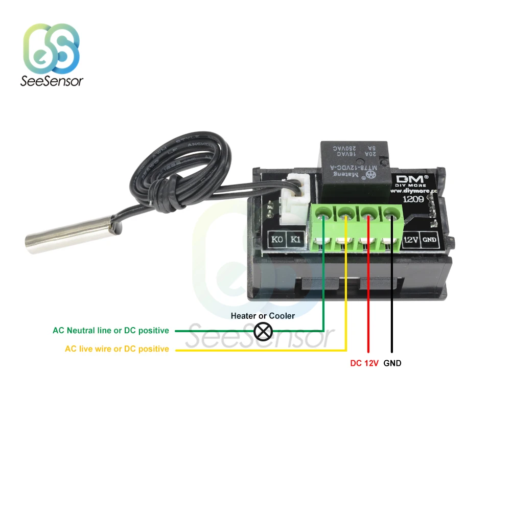 1 хW1209 12 В постоянного тока, красный, синий, зеленый светодиодный цифровой термостат, контроллер температуры, термометр, водонепроницаемый кабель с датчиком NTC