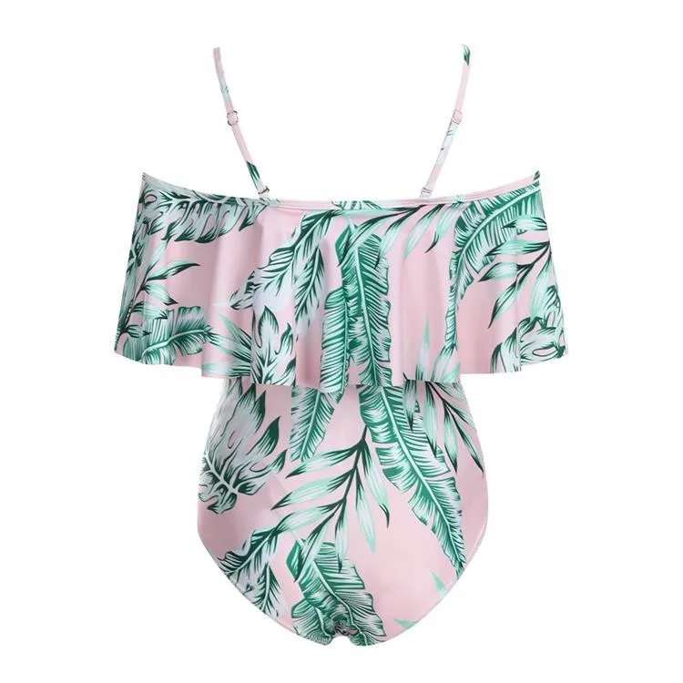 Беременности и родам Для женщин оборками с принтом листьев бикини к...