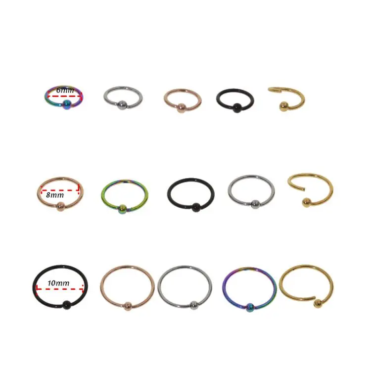 Серьги-кольца для имитации пирсинга носа, губ, ювелирное изделие с золотистой розой, шарики, стальные кольца-петли для носа, 2 шт.