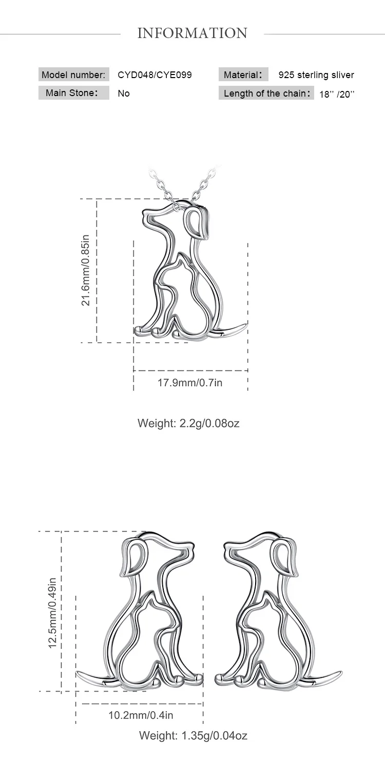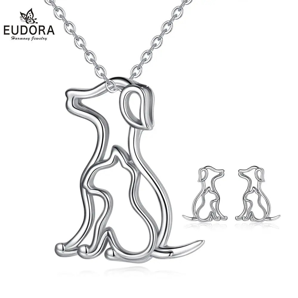 Ювелирные наборы Eudora из стерлингового серебра 925 пробы с подвеской в виде собаки, серьги с коробкой, модные украшения для женщин, подарок на день рождения