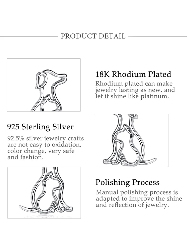 Eudora серебро 925 пробы, животное, собака, кошка, следы и кости, о...