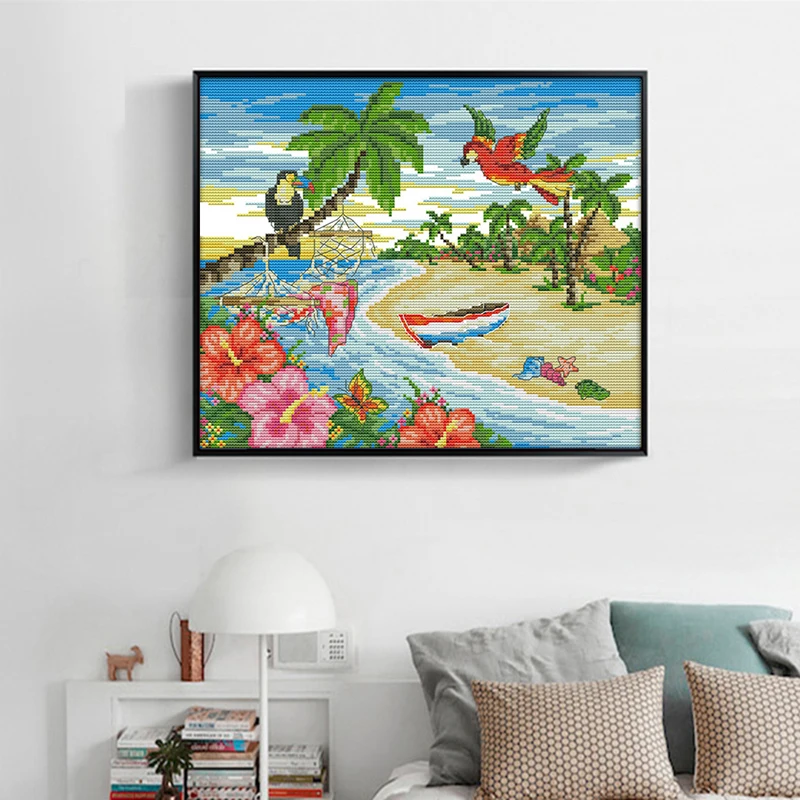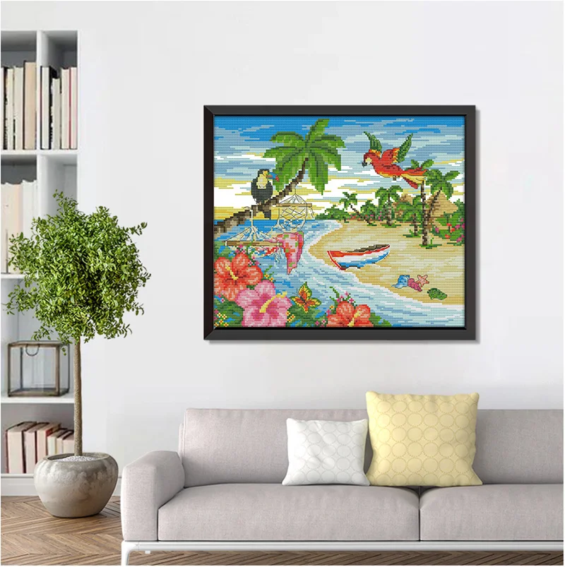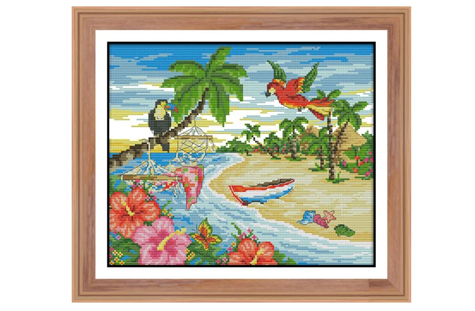 Летний Пляжный Набор для вышивки крестиком морской пейзаж экологическая хлопковая нить 14ct 11ct Печать Вышивка Сделай сам украшение для дома живопись