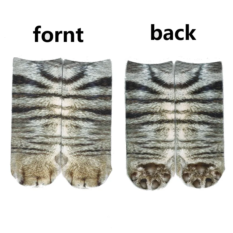 Носки женские хлопковые эластичные, дышащие, с 3D-принтом в виде лап животных
