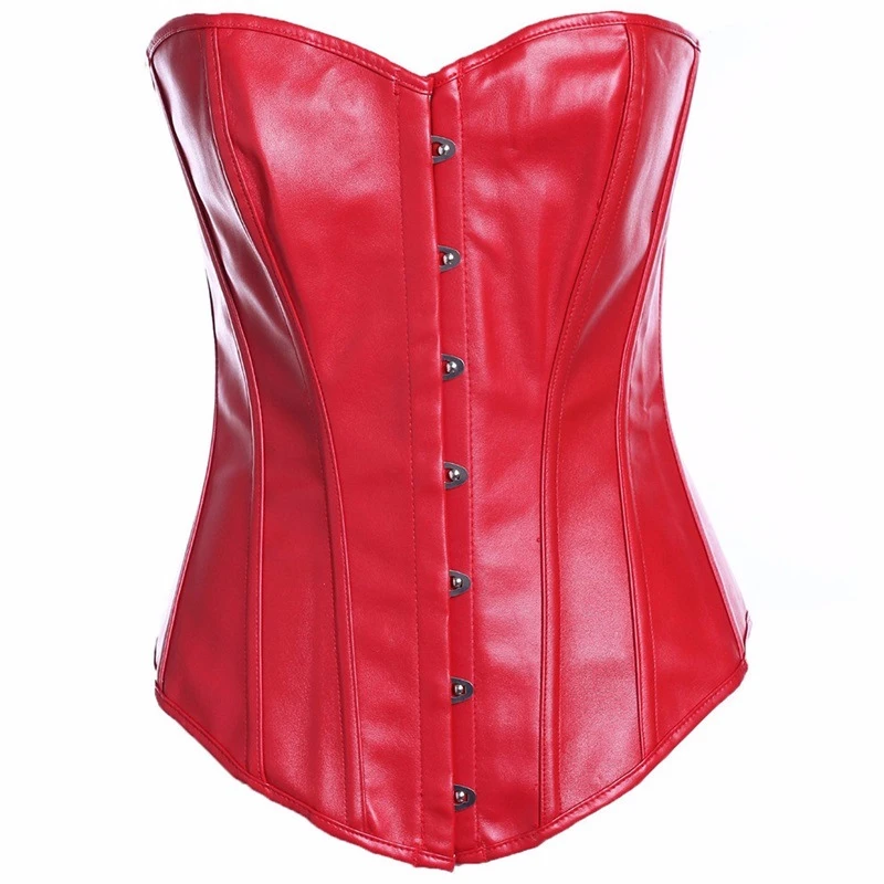 Черныйкрасный женский корсет пуш-ап в стиле панк, Утягивающее боди, готический сексуальный корсет из искусственной кожи, бюстье