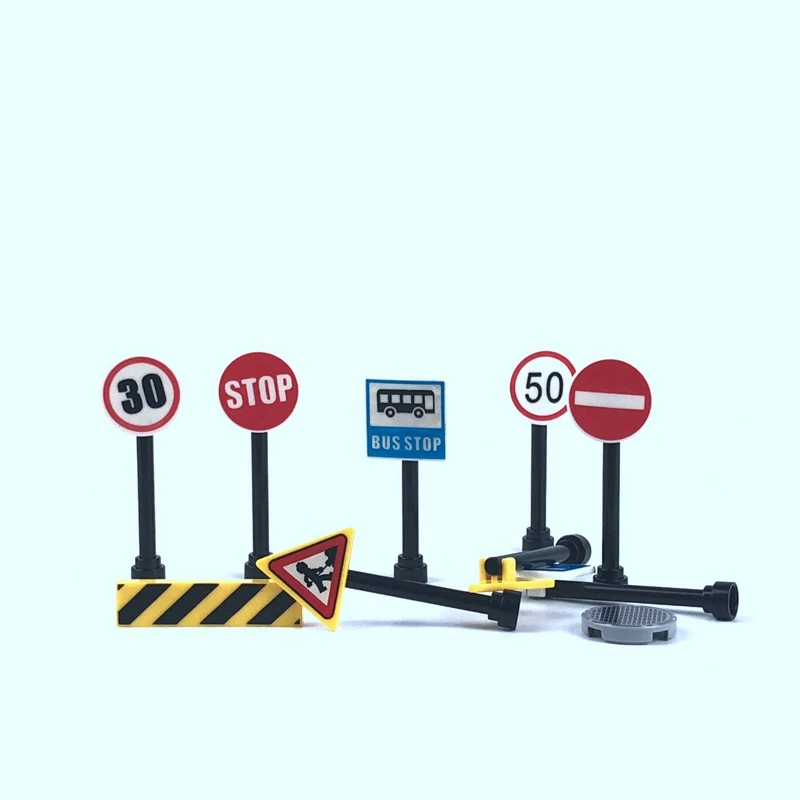 Город Legoing аксессуары блоки поезд трек уличный светильник Наборы инструментов дорожный Предупреждение ющий знак строительные блоки Legoings Citys детские игрушки