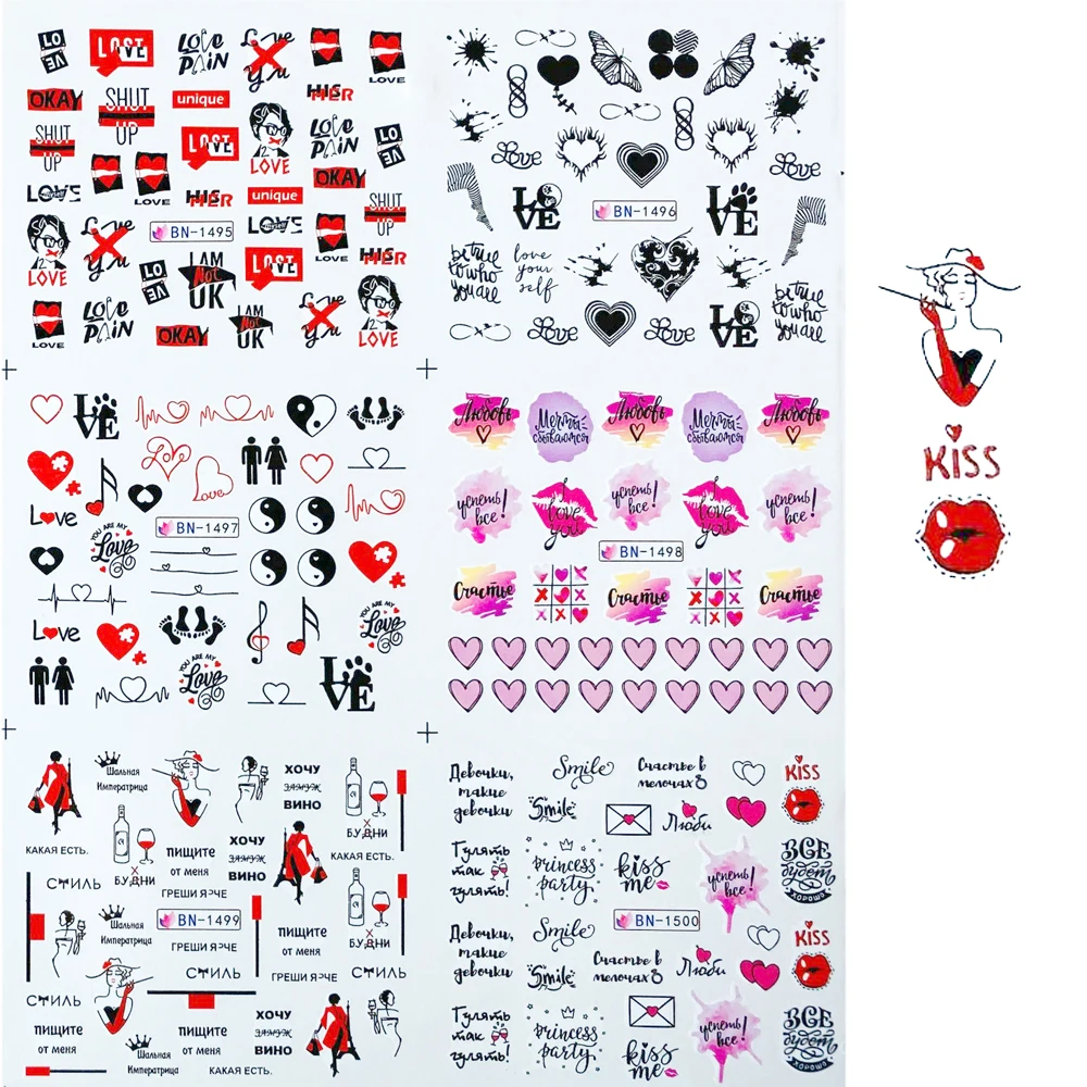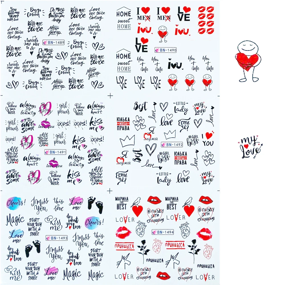 Наклейки для ногтей 12 дизайнов, русский стиль, женский дизайн, Переводные картинки для ногтей на День святого Валентина, татуировки для маникюра, BN1489