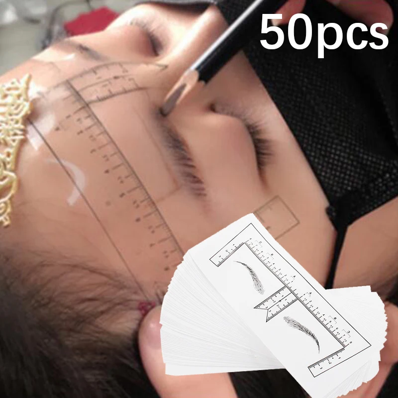 Линейка позиционирующая Полуперманентная, инструмент для микроблейдинга бровей, стандартная шкала, измерительная линейка для начинающих, 50 шт.