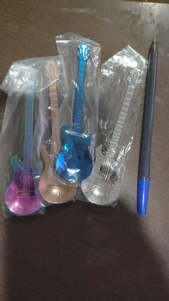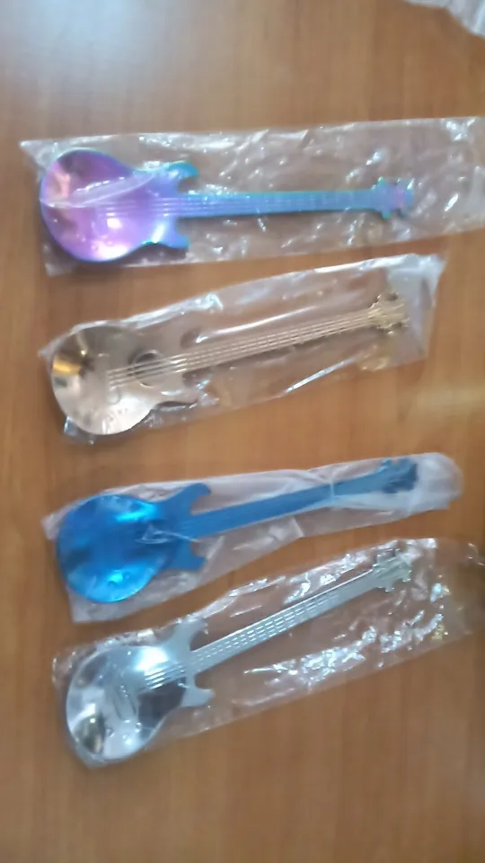 4 шт., гитара из нержавеющей стали в форме любовного ложка для чая и кофе, детская ложка, Новая красивая 7 цветов, для кофе, чая