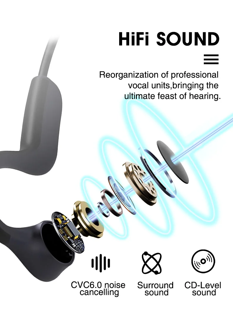 Bluetooth-гарнитура с костной проводимостью 5,0, беспроводные наушники, открытые, с микрофоном, шумоподавление, IPX5, наушники для велоспорта и бега