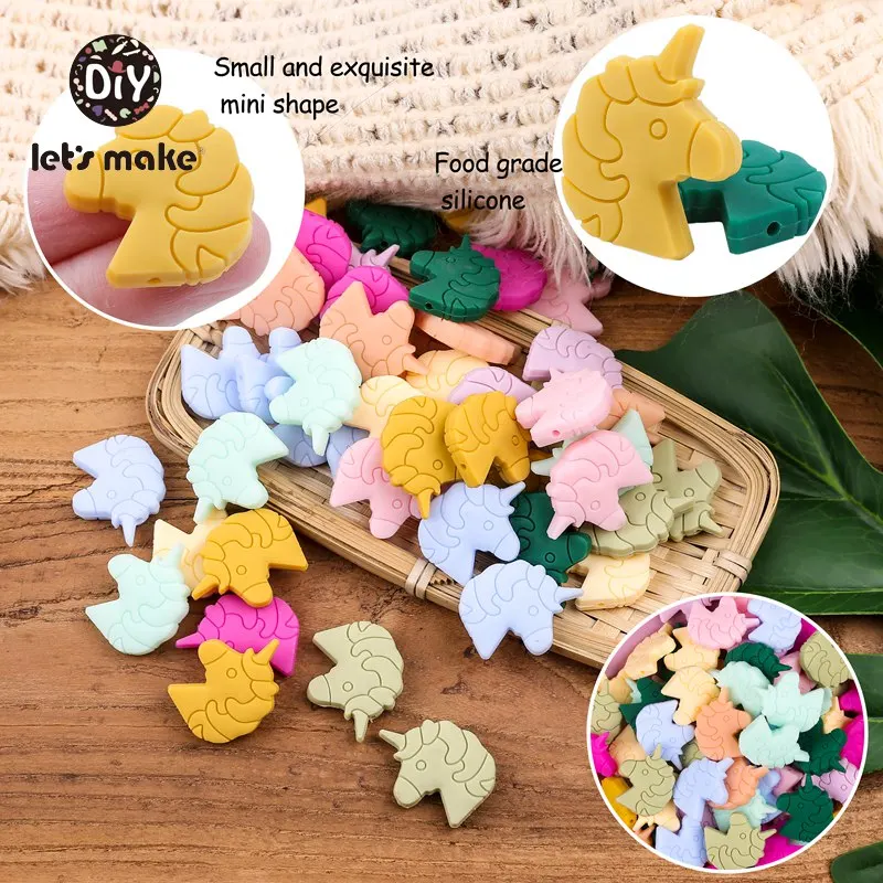 Набор из 10 шт., листья кактуса, единорога, черепахи, из пищевого силикона, без БФА, Let's Make силиконовый Прорезыватель для зубов из бусин