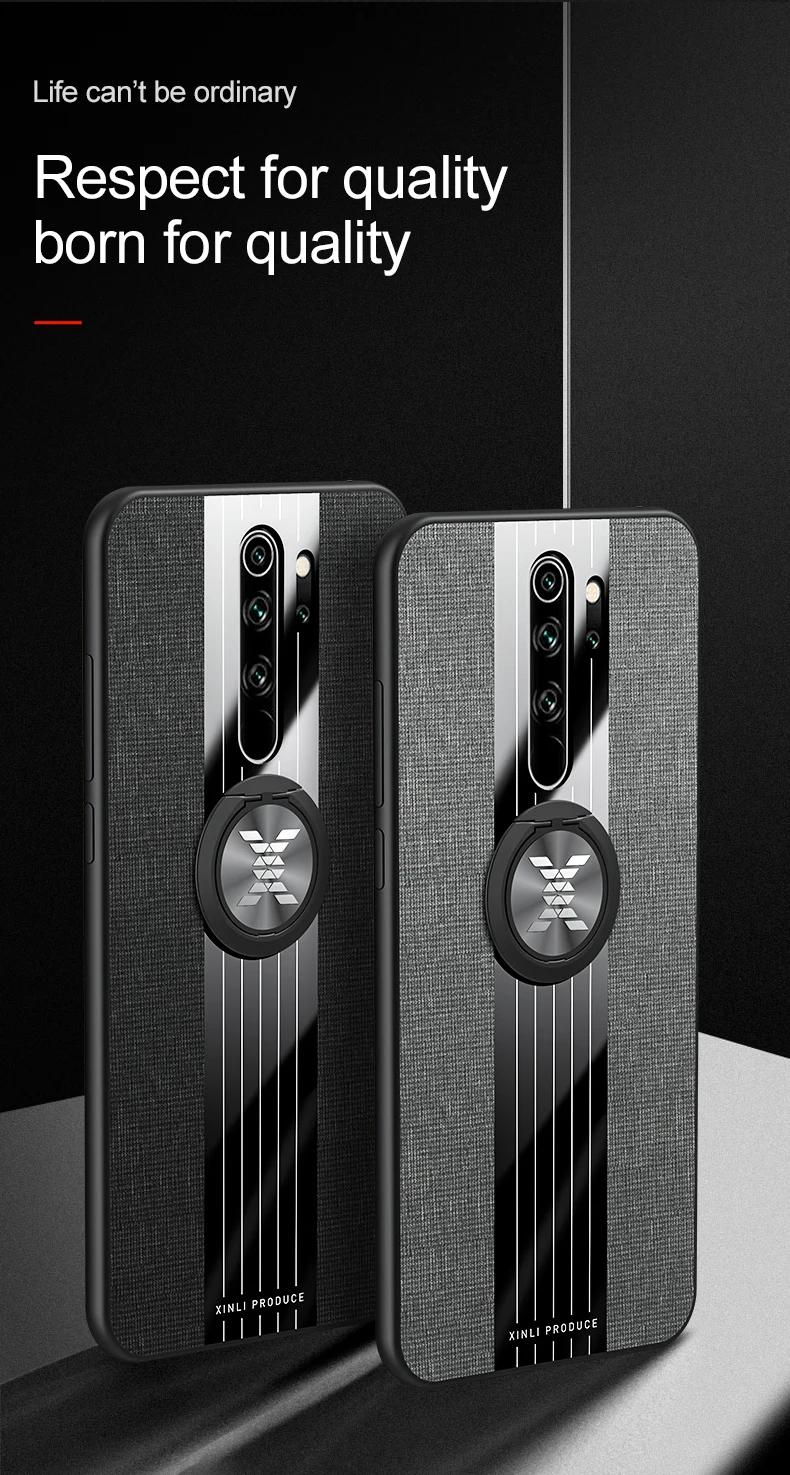 Чехол для Redmi 9 с кольцом-держателем, тканевая текстура, Жесткий ...