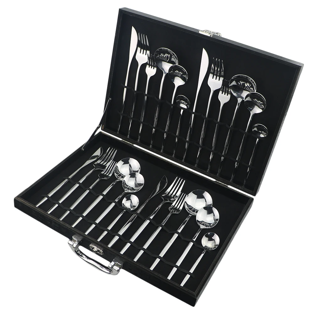 Набор зеркальных столовых приборов из нержавеющей стали серебряные столовые приборы, нож, десертная вилка, чайная ложка, столовое серебро набор столовой посуды для кухни, черный ящик