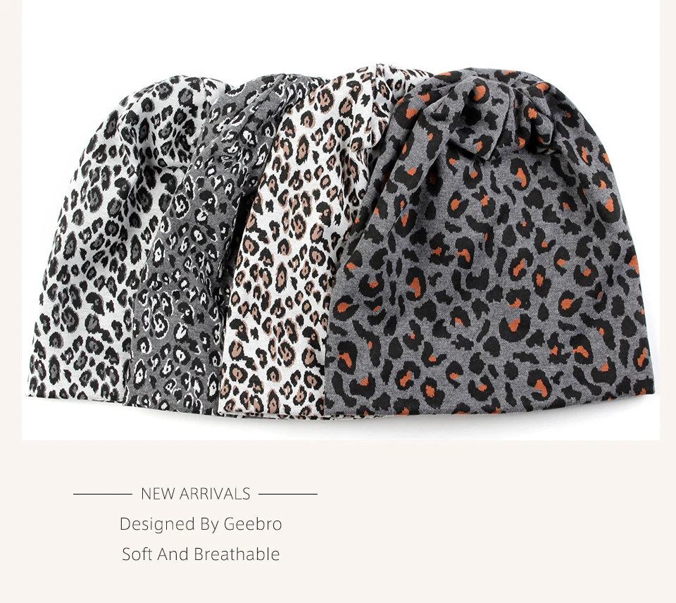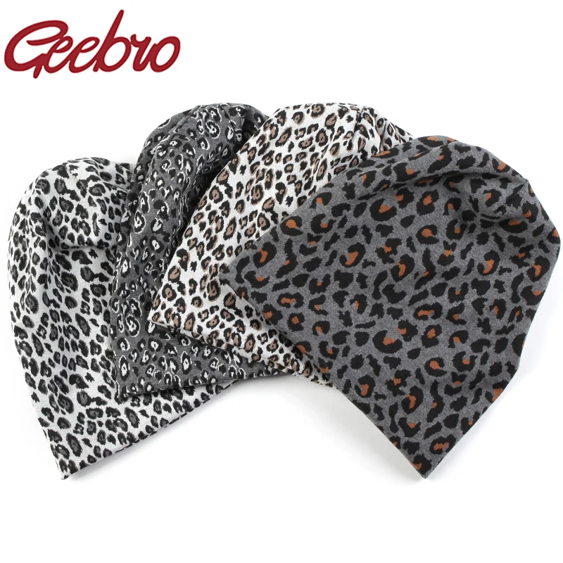 Geebro, новинка, женская модная теплая шапка в стиле хип-хоп с леопардовым принтом, шапки для девочек, весна-осень, хлопковые мешковатые шапки, шапочки, шапки