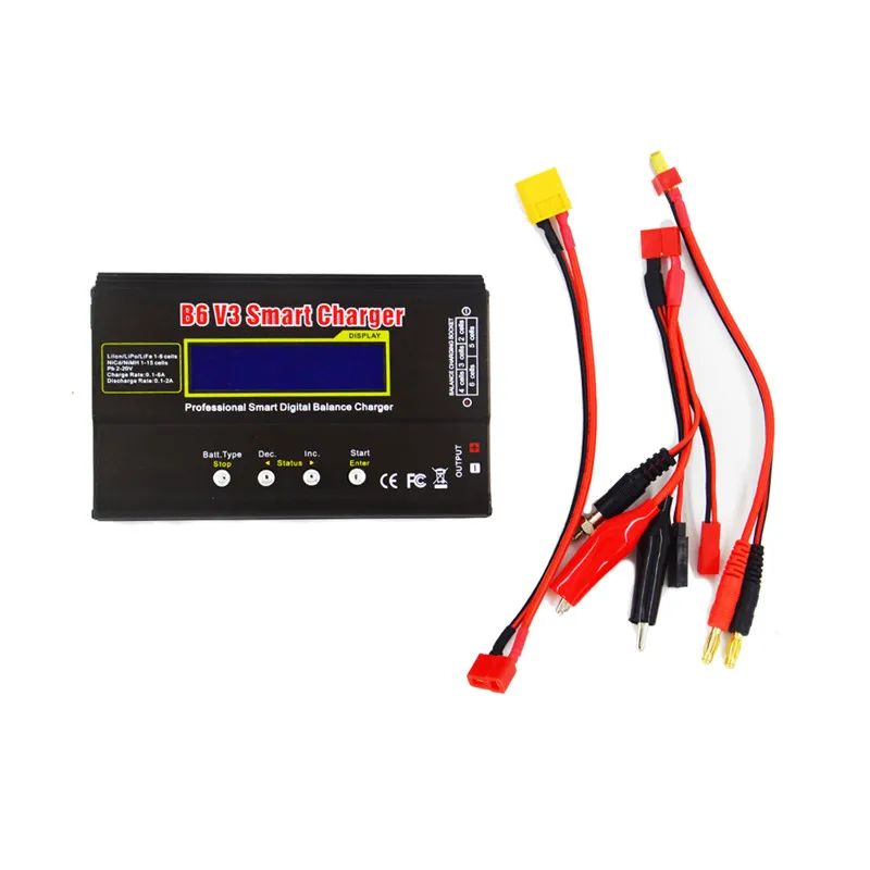 Входное напряжение постоянного тока: 11-18 в Ток заряда 0,1-6.0A Ток разряда 0,1-2.0A Мощность заряда макс. 80 Вт Мощность разряда Макс. 5 Вт Балансный ток 200 мА Зарядные устройства Li.Po,LiHv,Li.lon,Li.Fe:1-6cells NiCd,NiMH:1-15 ячеек Напряжение аккумулятора Pb 2-24 В Порт датчика температуры да Встроенный баланс да Размеры 135*86*32 мм (Д * Ш * В)