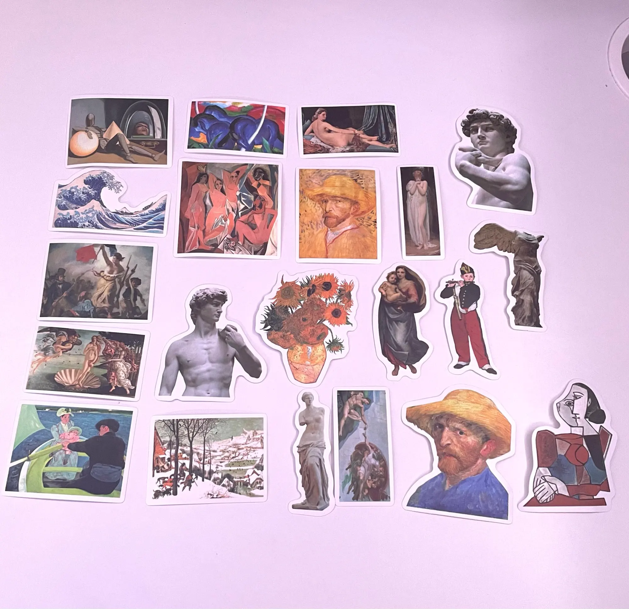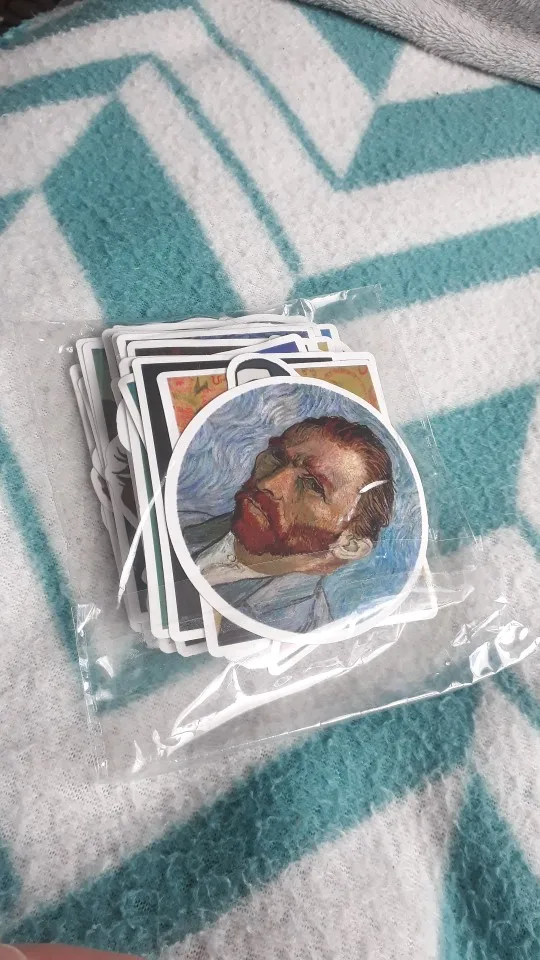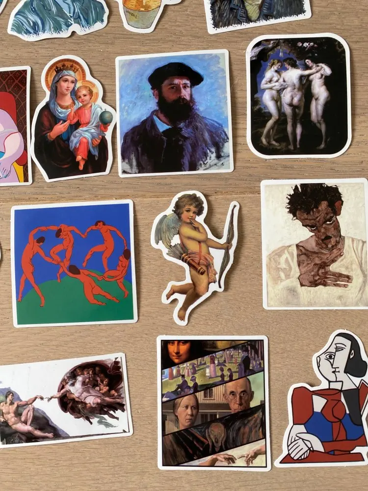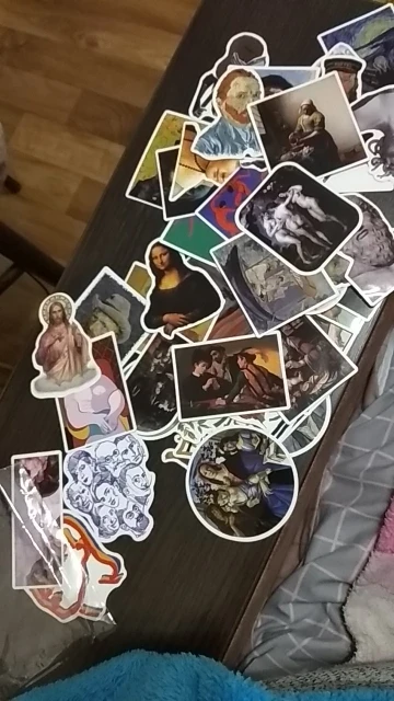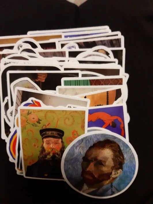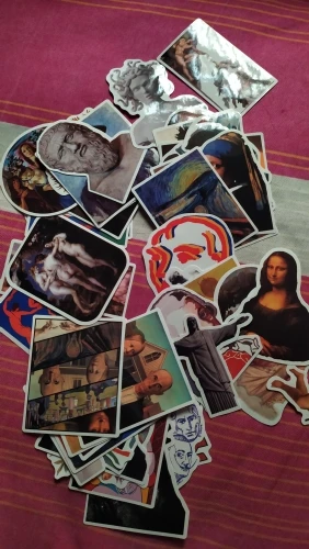 Наклейки с различными рисунками, от Ван Гога до Давида. Не идеальны, иногда цвета ошеломляются. Я ожидал большего.