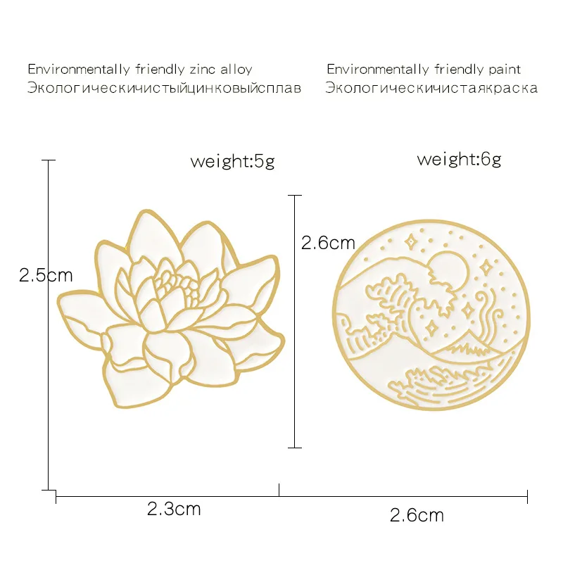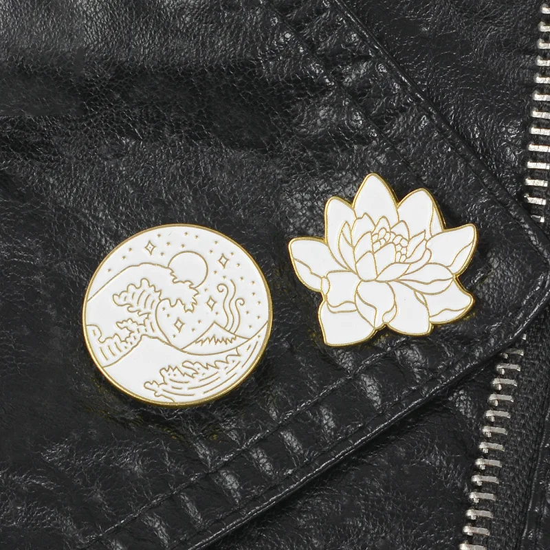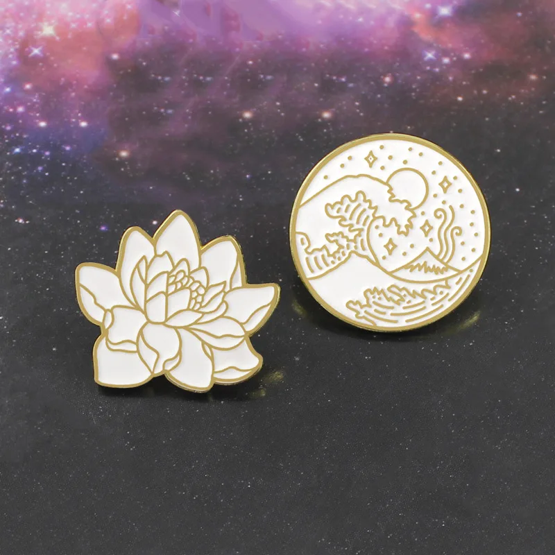 Эмалированная брошь волна и Лотос, булавки на пуговицах для сумки д...