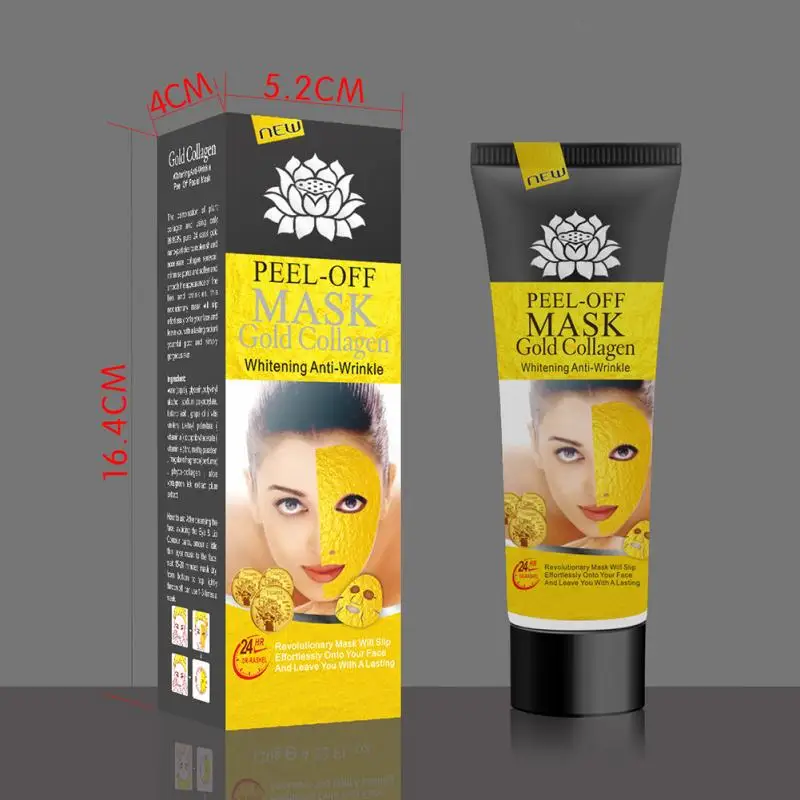 24K коллагеновая маска с золотом, отбеливающая, против морщин, отшелушивающая модная маска, сочетание растительного коллагана и использование только 99.99% чистых наночастиц золота 24 карата для пополнения и ускорения обновления коллагена, разглаживает поры, смягчает и разглаживает внешний вид мелких складок и морщин.