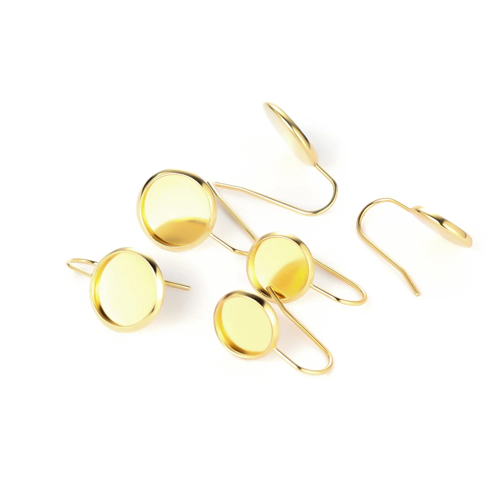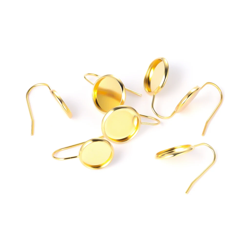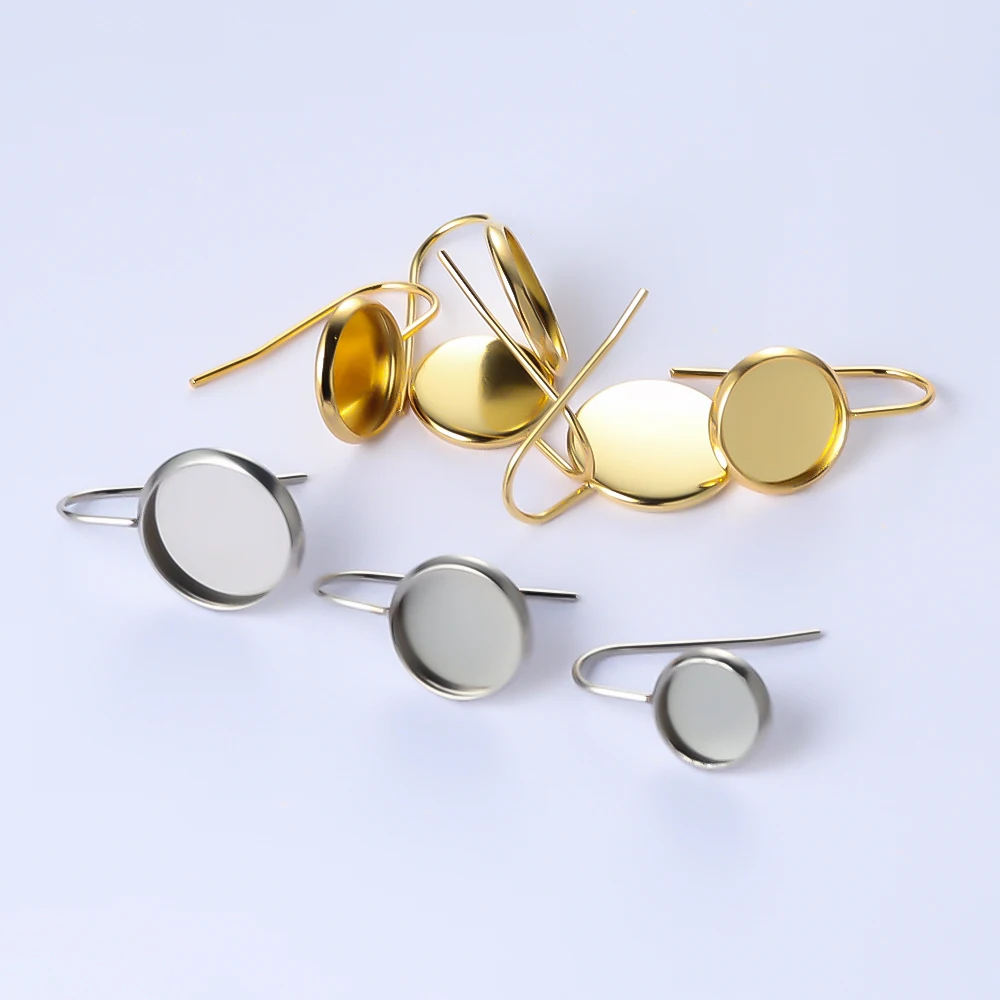 Полупустые настройки сережек из нержавеющей стали, 10 шт., кабошон, основа для камеи, для рукоделия, размеры 8 мм, 12 мм