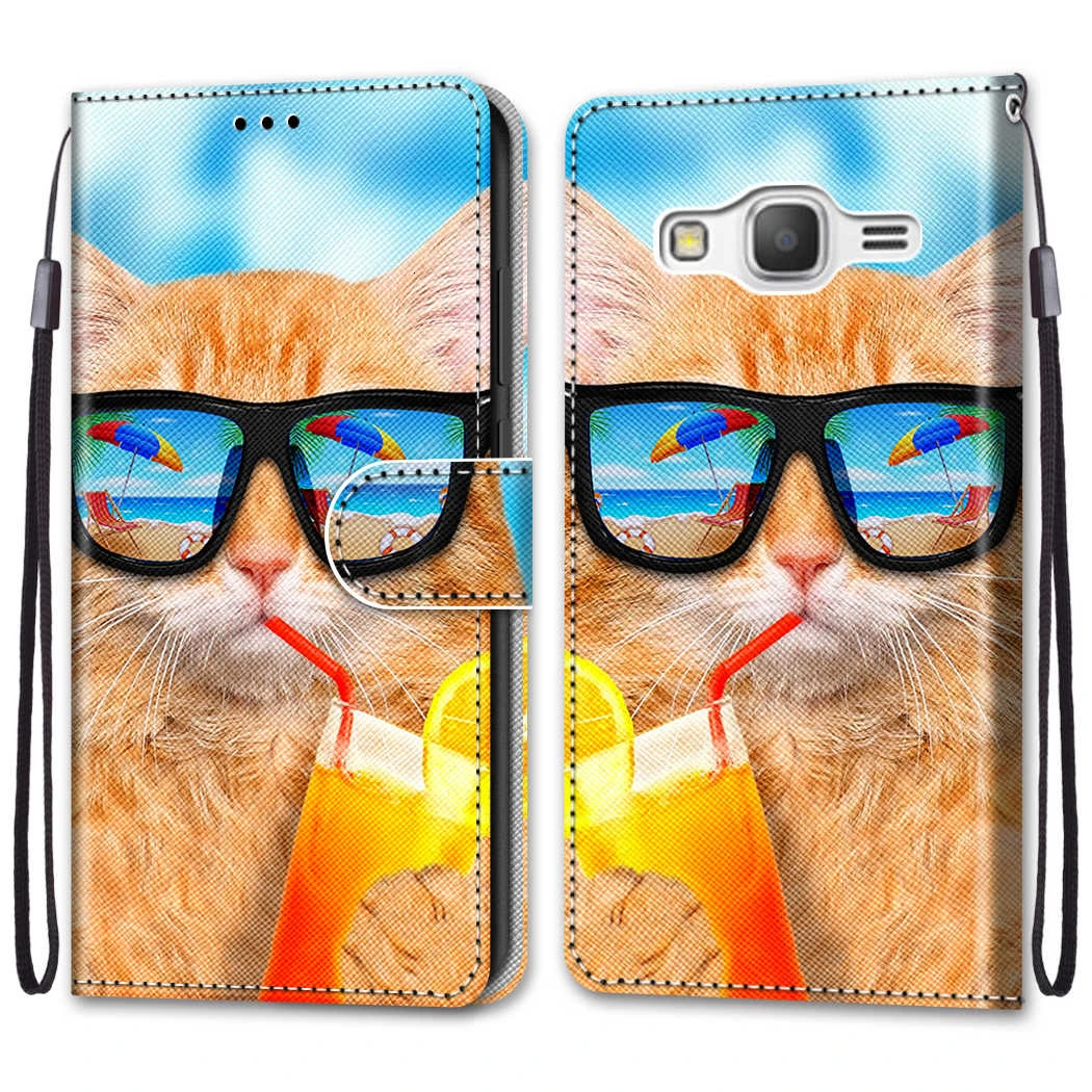 Чехол-книжка для Samsung Galaxy Grand Prime G530, J2 Prime, кожаный, с отделением для карт и кошечками