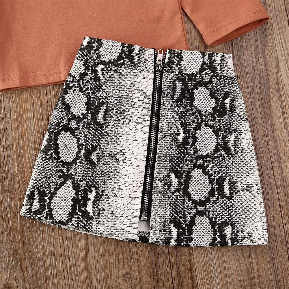 Осенний комплект одежды для маленьких девочек, однотонная Водолазка с длинным рукавом + трапециевидная Юбка со змеиным принтом, комплект из 2 предметов