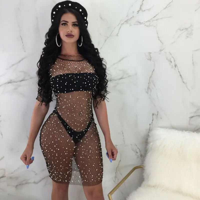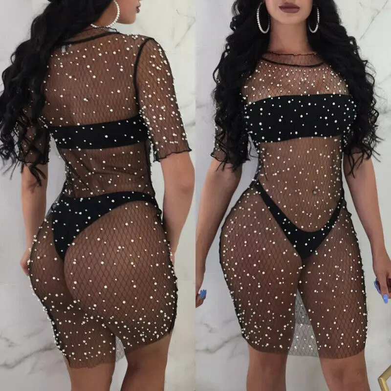 Сексуальное летнее пляжное платье Hirigin для женщин, блестящее кружевное вязаное бикини с блестками, купальный костюм, мини-платье